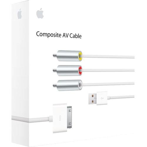 The composite AV cable connects to your device or universal dock via the standard iPod 30-pin dock connector. On the other end is a composite (also known as RCA) AV cable with video (yellow connector) and analog audio (red/white connectors) for an easy connection to your TV, stereo receiver, or other device.
